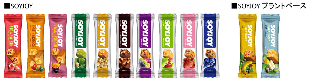 タンパク質や大豆イソフラボンなどの素材由来の栄養をおいしく、いつでもどこでも手軽に食べられる大豆バーとして2006年に誕生。1本当たり約35粒のまるごと大豆と素材の味わいを大切にした低GI食品としてラインアップを拡充してきました。日本においては2024年3月に「SOYJOY イチジク&レーズン」を発売し、現在計12種類のフレーバーを展開しています。