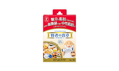 Kenja-no-shokutaku contains dietary fiber (indigestible dextrin), which slows the absorption of sugars and lipids, thereby reducing the rise in blood glucose levels and triglycerides in the blood after a meal. It can therefore help improve the diets of people concerned about blood glucose levels after a meal and who tend to consume a lot of fat.